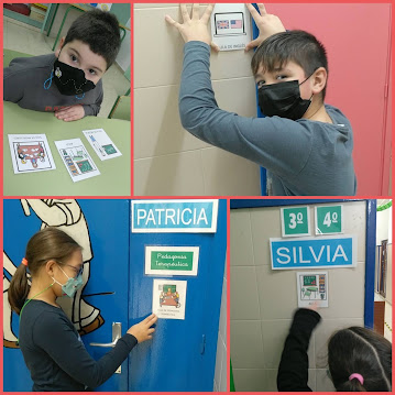 O uso dos pictogramas axúdanos a todos e todas a comprender mellor a nosa contorna. Esta semana, aprendemos sobre eles e comezamos a sinalizar os espazos de uso de común do colexio.